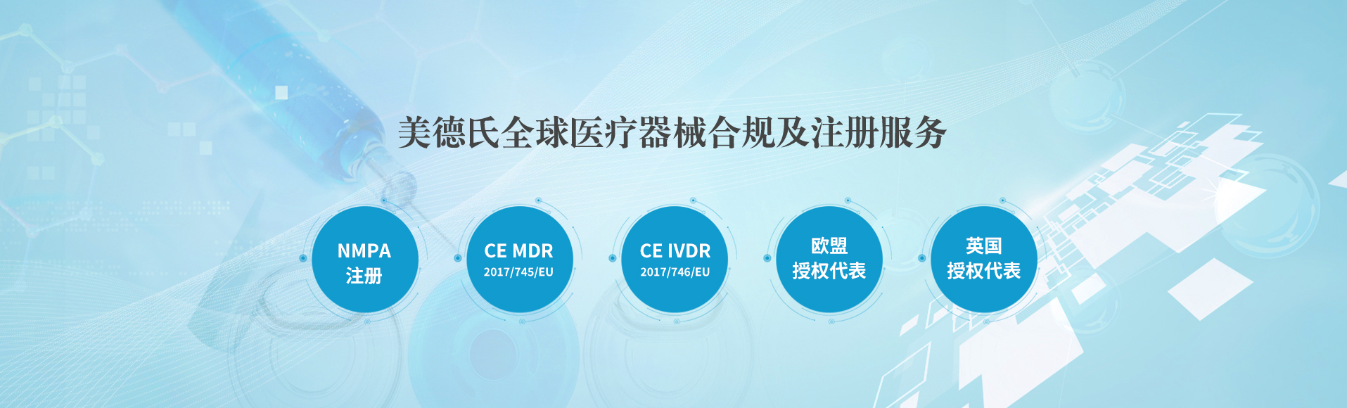 上海美德氏醫(yī)療科技有限公司觸及醫(yī)療行業(yè)熱點需求,提供專業(yè)法規(guī)解讀,專業(yè),誠信,可靠,真正為您的醫(yī)療產(chǎn)品出口的合規(guī)環(huán)節(jié)提供全流程解決方案! 美德氏涉及的服務包括醫(yī)療器械歐盟CE認證咨詢(mdr認證;IVDR認證),ISO 13485咨詢;美國FDA注冊(510K;QSR820);歐代美代;國內NMPA注冊咨詢:醫(yī)療器械歐...